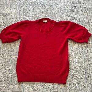 Bright red knit top with ribbed neckline. Ideal for everyday wear. It’s called the Strong and Wild Short