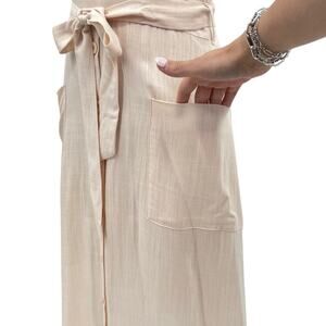 Roolee Cream Woven Belted Flutter Sleeve Button Front V-neck Midi Dress