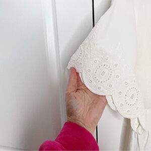 Roolee FLOWER EMBROIDERED EYELET SCALLOP EDGE MIDI DRESS Size L Cotton