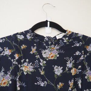 Roolee Mom Navy Blue Floral Short Sleeve Modest Nursing Maxi Dress sz S