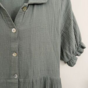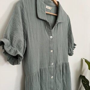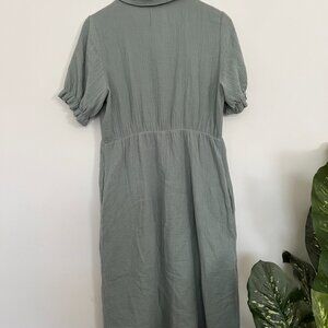 Roolee Sage Cotton Gauze Midi Dress with Functional Buttons & Collar - size S