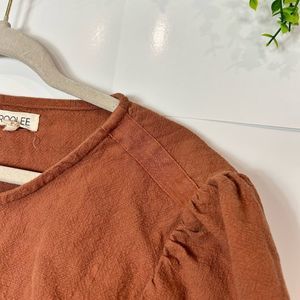 Roolee Tan Boho Midi Dress Medium Prairie Puff Sleeve Ruffle Hem
