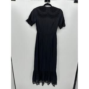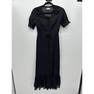 Roolee Womens Black Maxi Button Front Dress Size XS Lace Goth Grunge Witchy