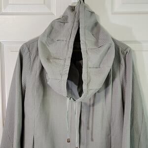 Roolee Women's Sage Green Cape Jacket Size Med Full Zip Ripstop Earth Tone NWT Can flip collar up to make a hood & drawstring ties with metal ends. #H-52-98