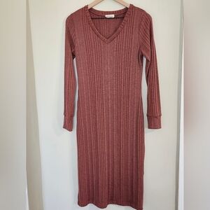 Roolee Ribbed Long Sleeve Midi Dress Women’s Size M