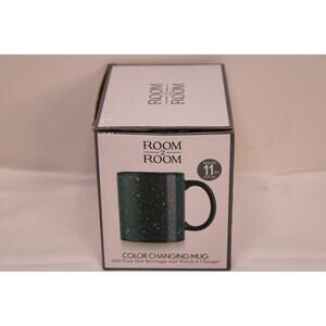 This is a Room 2 Room Color Changing Mug with a capacity of 11 fl oz. It features a novelty design showcasing consolations and star mapping. The ceramic mug is green and is heat sensitive, changing color when hot liquid is poured into it. The set includes one mug, and it is new in the box.