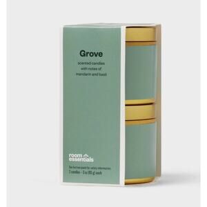 Room Essentials 2pk 3oz Tin Gift Set Grove Scented Soy Wax Blend Jar Candles New