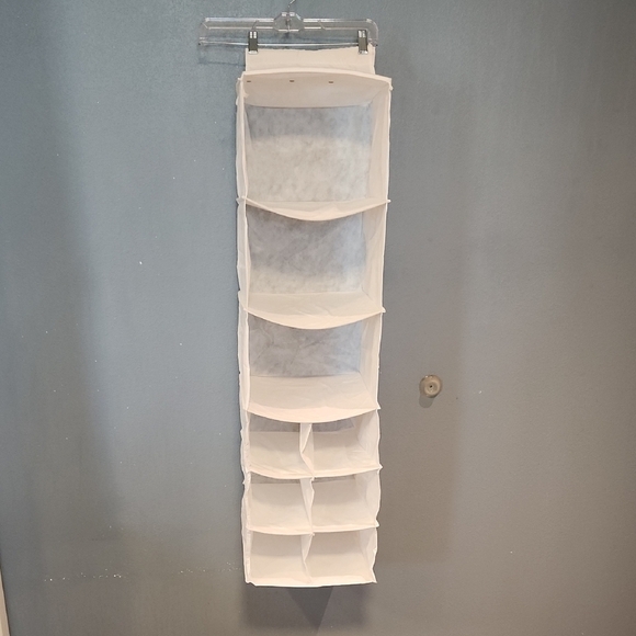 does have a velcro strap to hang on rod in closet