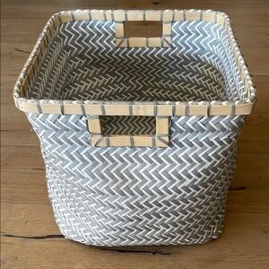 Get organized with Room Essentials Small Decorative Bins. Hand-woven of durable polypropylene in a stylish gray & white zig zag weave. Baskets help bring order to chaos, contain clutter and provide a place for everything. With its natural bamboo rim, our Room Essentials Small Decorative Bin adds a casual, contemporary touch to your well-organized home.