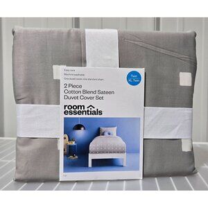 Room Essentials Gray & White Squares Cotton Sateen Twin Duvet & Sham 2 Pc Set