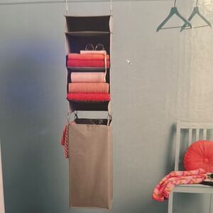 Room Essentials Gray 3-Shelf Hanging Closet Organizer with Removable Laundry Bag!