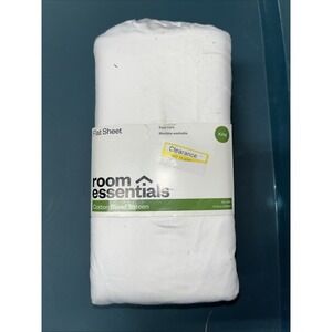 The Room Essentials King Size Flat Sheet is made from a comfortable and luxurious cotton blend sateen material in a crisp white color. This flat sheet is perfect for any bedroom setting and is easy to care for with machine washable instructions. The solid color pattern adds a clean and elegant touch to your bed, while the open packaging ensures you have everything you need for a cozy night's sleep.