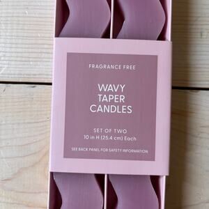 Room Essentials NWT NIB Wavy Shaped Taper Candles Pink Frangrance Free Set of 2