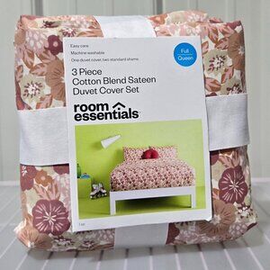 Room Essentials Queen Pink Floral Cotton Blend Sateen Duvet & 2 Sham 3 Pc Set
