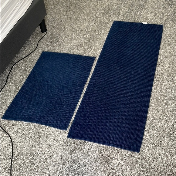 Matching rug set, perfect for the bathroom! Dark navy color Small rug 32”x20” Large rug 58”x20”