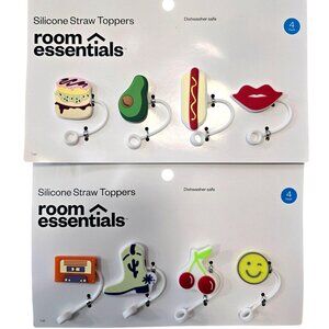 Room Essentials Silicone Straw Toppers Dishwasher Safe 8-Pack Cartoon Fun Assort