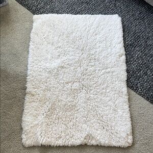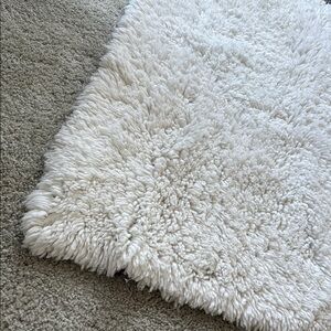 Elevate your bathroom decor with this plush cream bath rug. Its soft texture provides comfort and style.
