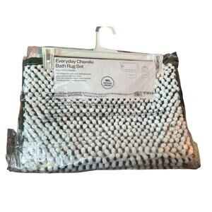 Room Essentials White/Dark Green Everyday Chenille Bath Rug Set Of Two