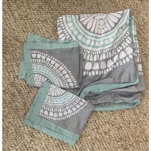 Room Essentials TARGET Boho BLUE GRAY Duvet Cover & 2 Pillowcases SET FULL QUEEN