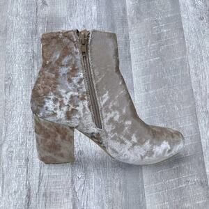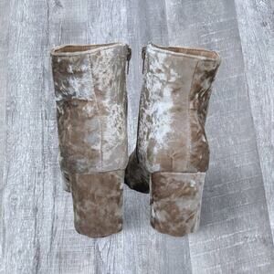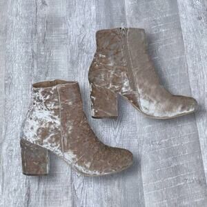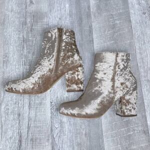 Room Of Fashion Velvet Ankle Bootie Womens 7 Champagne Blush Chunky Block Heel