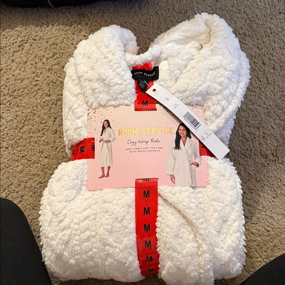 Soft and plush white wrap robe with patch pockets. Perfect for lounging. New.
