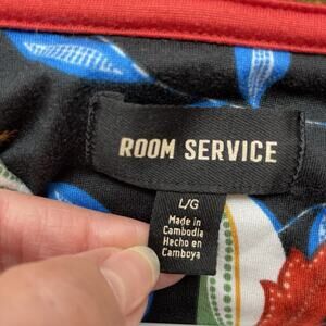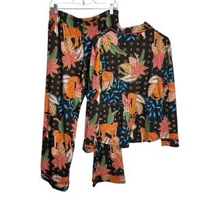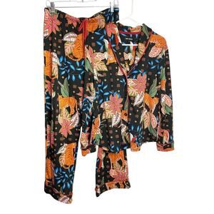 Room Service Pajamas 2 Pc Set Womens L Colorful Tiger Jungle Pockets Top Bottoms
