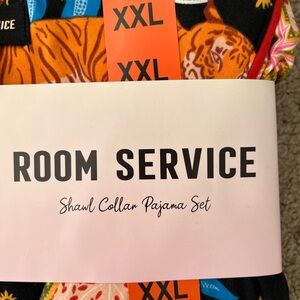 New With Tags Women’s Room Service 2-Piece Shawl Collar Pajama Set.