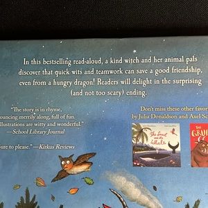 In this best selling, read aloud, a kind, Wich and her animal pals discover that quick wits and teamwork can save a good friendship even from a hungry dragon. Readers will delight in the surprising and not too scary ending. By Julia Donaldson and Axel Scheffler