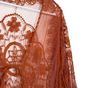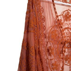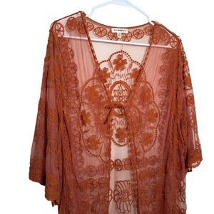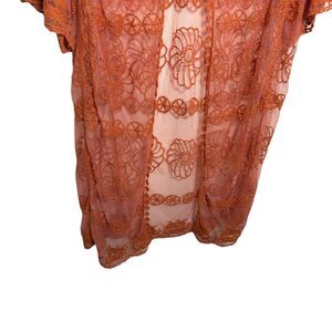 Roomates Kimono Women's Large Orange Lace Mesh Sheer Tie Cottage Boho