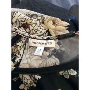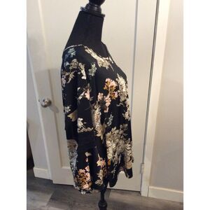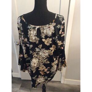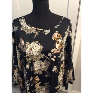 Roomates Plus size 2X Bell Sleeve Long Floral print Black Blouse