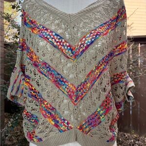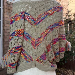 Lightweight, boho-chic multi-coloured crochet sweater with a V-neckline and a relaxed fit #crochetlove #festivalvibes