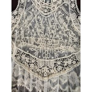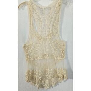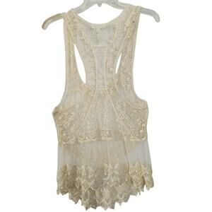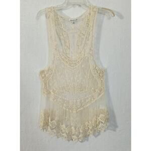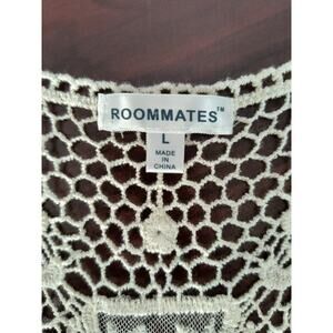 Roommates Crochet Mesh Top Women's Sz L Ivory Sleeveless Embroidered Sheer Boho