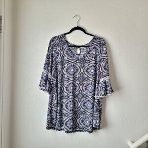 Roommates Plus Size Boho Bell Sleeves Embroidered Blouse
