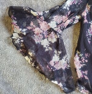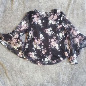 Roommates Sheer Floral Blouse With Bell Sleeves Size L