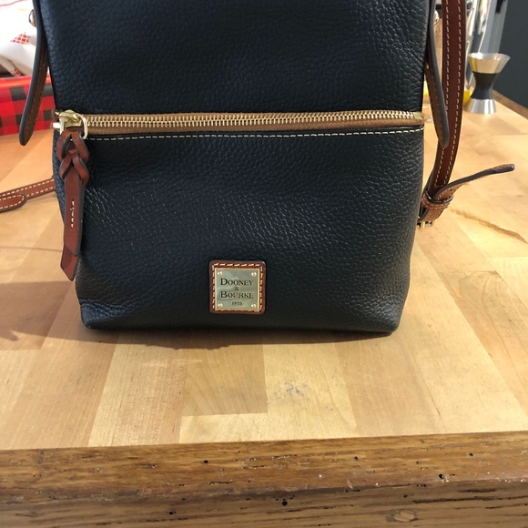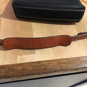Very good condition, pebble leather, adjustable strap, multiple zipper pouches,