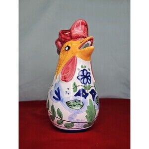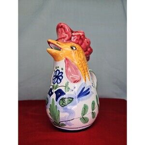 Hand-painted in Italy, Rooster Creamer /Saucer /Pitcher. Measures 9.25"h x 4.5"wide x 7"long. Weighs 1.9lb.