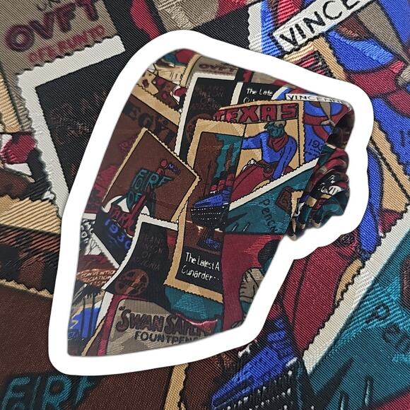 Rooster Novelty Tie Postage Stamps Burgundy Silk 56.6"