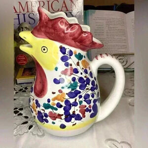 Rooster Pitcher - DERUTA MILK PITCHER , Hand Painted. MADE IN ITALY.