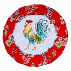 Rooster plates, 4 plates sold separately. Never used. These may be used as a small dinner plate or a dessert plate. Colors available are red, blue, teal and yellow. One of each color is available. I can make a package deal and sell the four together. I will entertain any reasonable offer.