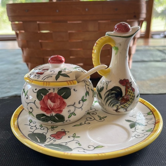Rooster and Roses Condiment Set