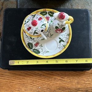 Vintage Rooster and Roses Condiment set missing pepper. No chips, cracks or visible crazing.