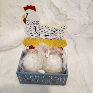 Vintage 1994 Trippies Inc New (Never Used) Farm Fresh Eggs Salt & Pepper Set