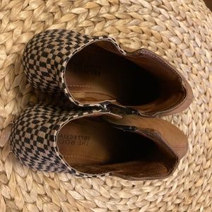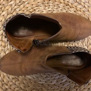 Fits true to size, but for half sizes, size up. This style may feel narrow at first, but will stretch with wear and mold to your foot.