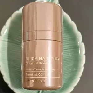 NWT The Face Shop "Quick Hair Puff" Root Coverage Powder, Instantly covers Greys (01-Natural Brown)