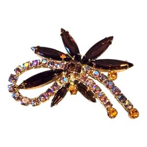 Rootbeer Brown Aurora Borealis Crystal Goldtone Vintage Brooch Pin