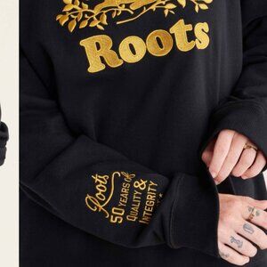 For 50 years, we have provided our signature comfort, quality, and style to generations. To celebrate, we created the limited-edition Roots Anniversary Collection. Meet the 50th Cooper BF Crew. A commemorative piece with a golden beaver and Roots logo on the front and "Roots 50 years of quality and integrity" printed in gold on the sleeve. A collector's item!