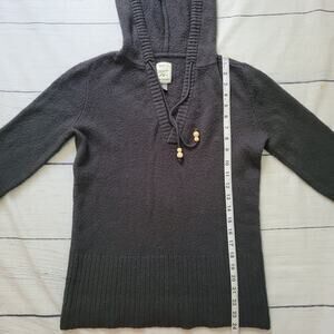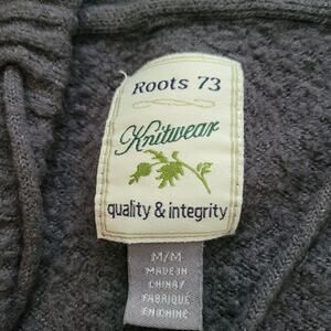 Roots 73 Size M Hooded V-Neck Knit Sweater Wood Bead Tie Drawstring Hem