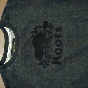 Details about the item: Heather black fuzzy soft cotton inside velvet Roots Beaver logo detailed fitted long sleeve lightweight sweatshirt