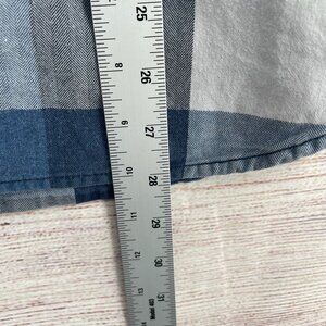 Stylish plaid design. Button-down front. Long sleeves. Perfect for casual wear.