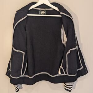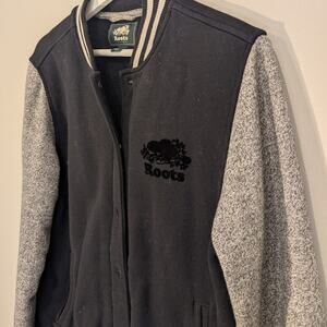 Roots Bomber Varsity Jacket Gray Black Fleece Classic Retro Style - Size S